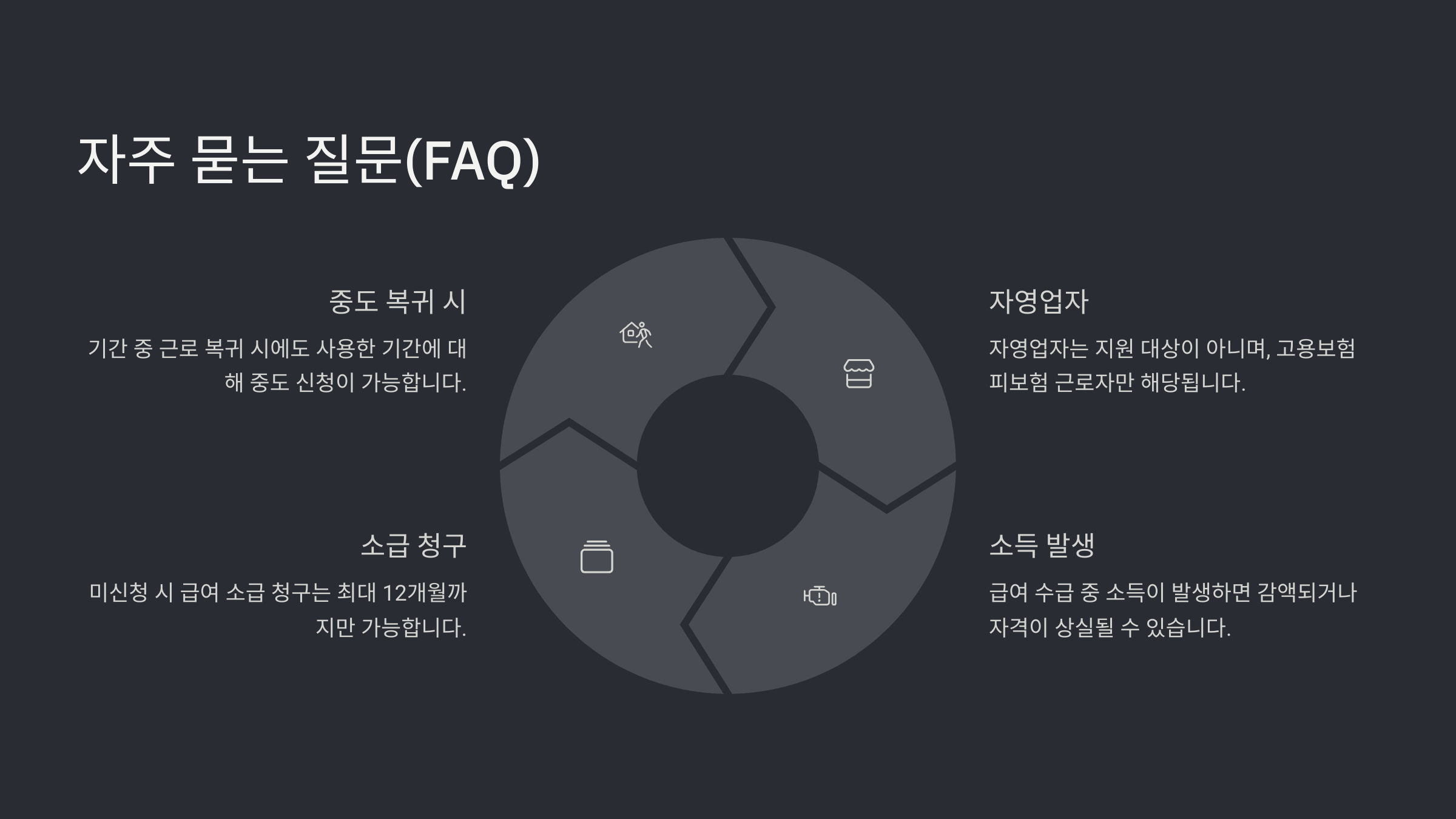 A5. 급여 수령 중에는 다른 소득 활동이 금지돼요. 적발 시 환수될 수 있어요.