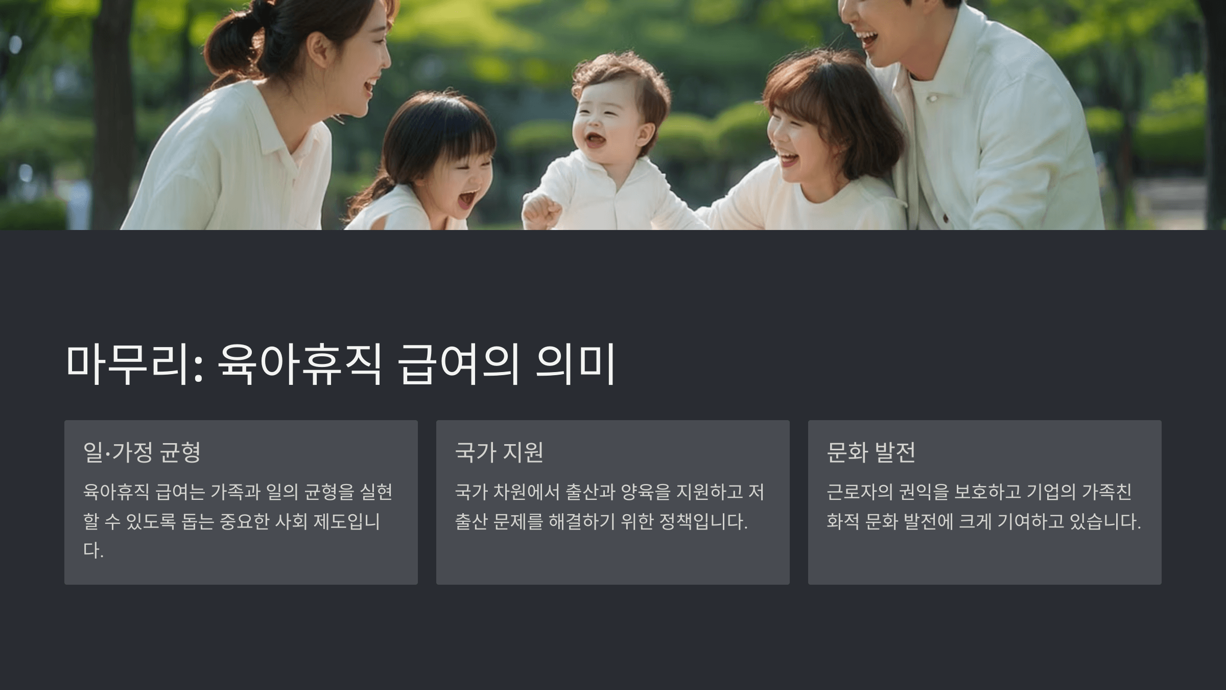출산휴가 급여가 출산 직후 3개월간 지급되는 것이라면, 육아휴직 급여는 출산 이후 아이 양육에 집중하는 기간을 위한 장기 제도예요.