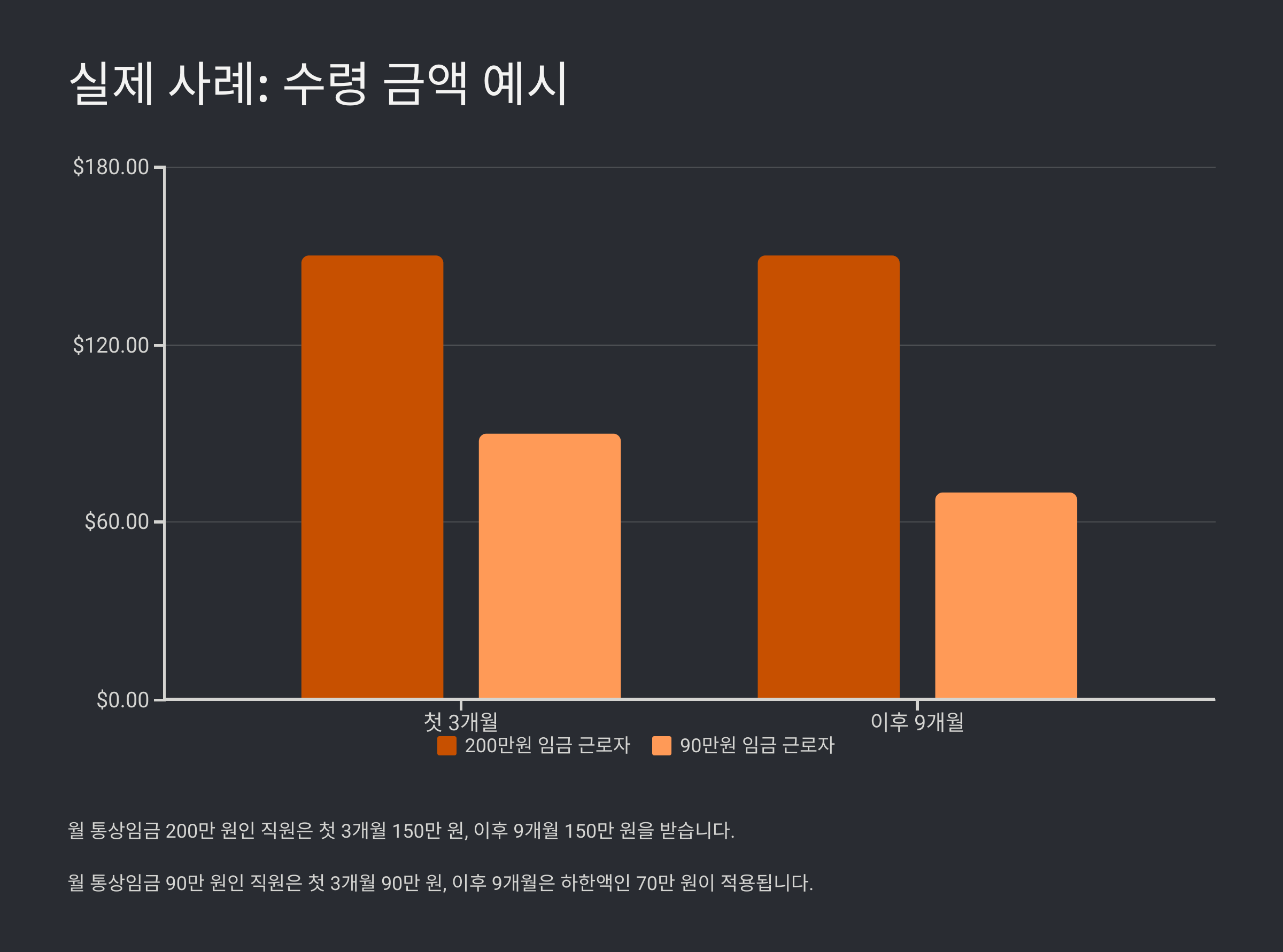 ✅ 총 12개월 수령액: (150만 원 × 3개월) + (120만 원 × 9개월) = 총 1,590만 원